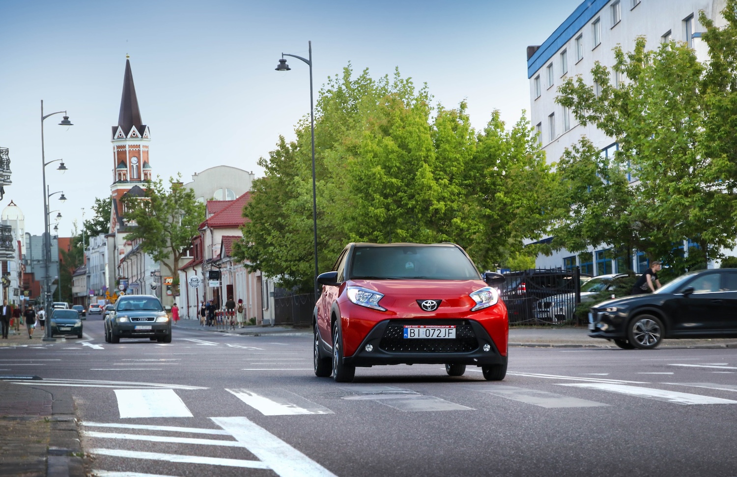 Nowa Toyota Aygo X wyróżnia się bogatym wyposażeniem, które zwiększa komfort i bezpieczeństwo jazdy. Na pokładzie znajdziemy m.in. manualną klimatyzację, aktywny tempomat, porty USB-C oraz integrację z Apple CarPlay i Android Auto. Choć model nie posiada wbudowanej nawigacji, możliwość podłączenia smartfona rozwiązuje ten problem. Dodatkowo samochód wyposażony jest w kamerę cofania oraz automatyczne światła, co ułatwia poruszanie się w miejskim zgiełku. Z systemem Isofix, ten model jest również odpowiedni dla rodzin podróżujących z małymi dziećmi. Toyota Aygo X to stylowy, miejski samochód, który łączy ekonomię z komfortem i nowoczesnymi technologiami, zapewniając wygodną jazdę w każdych warunkach.
