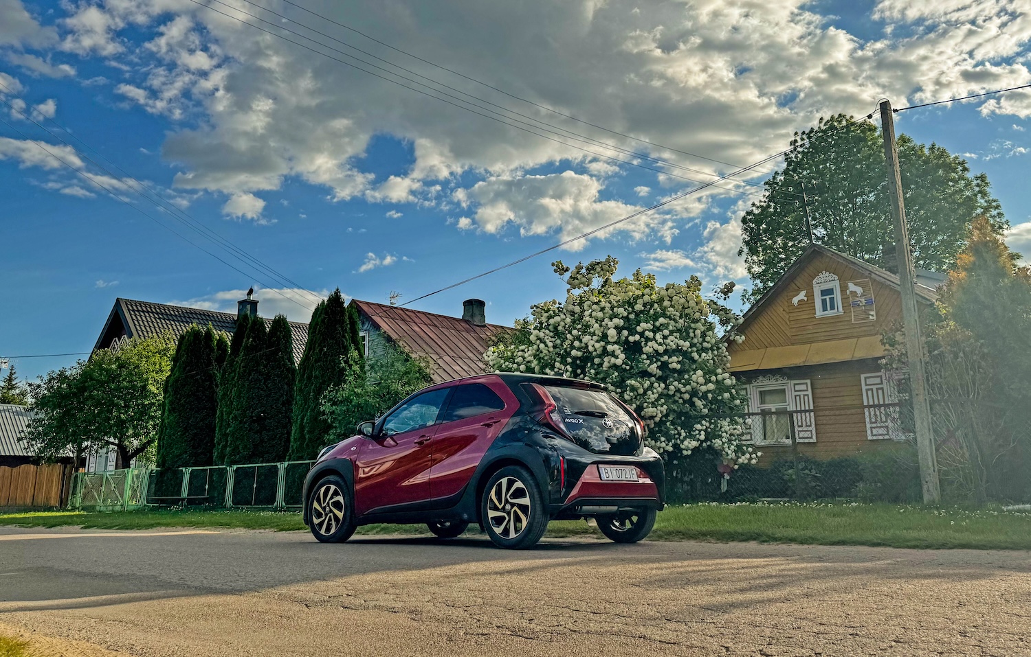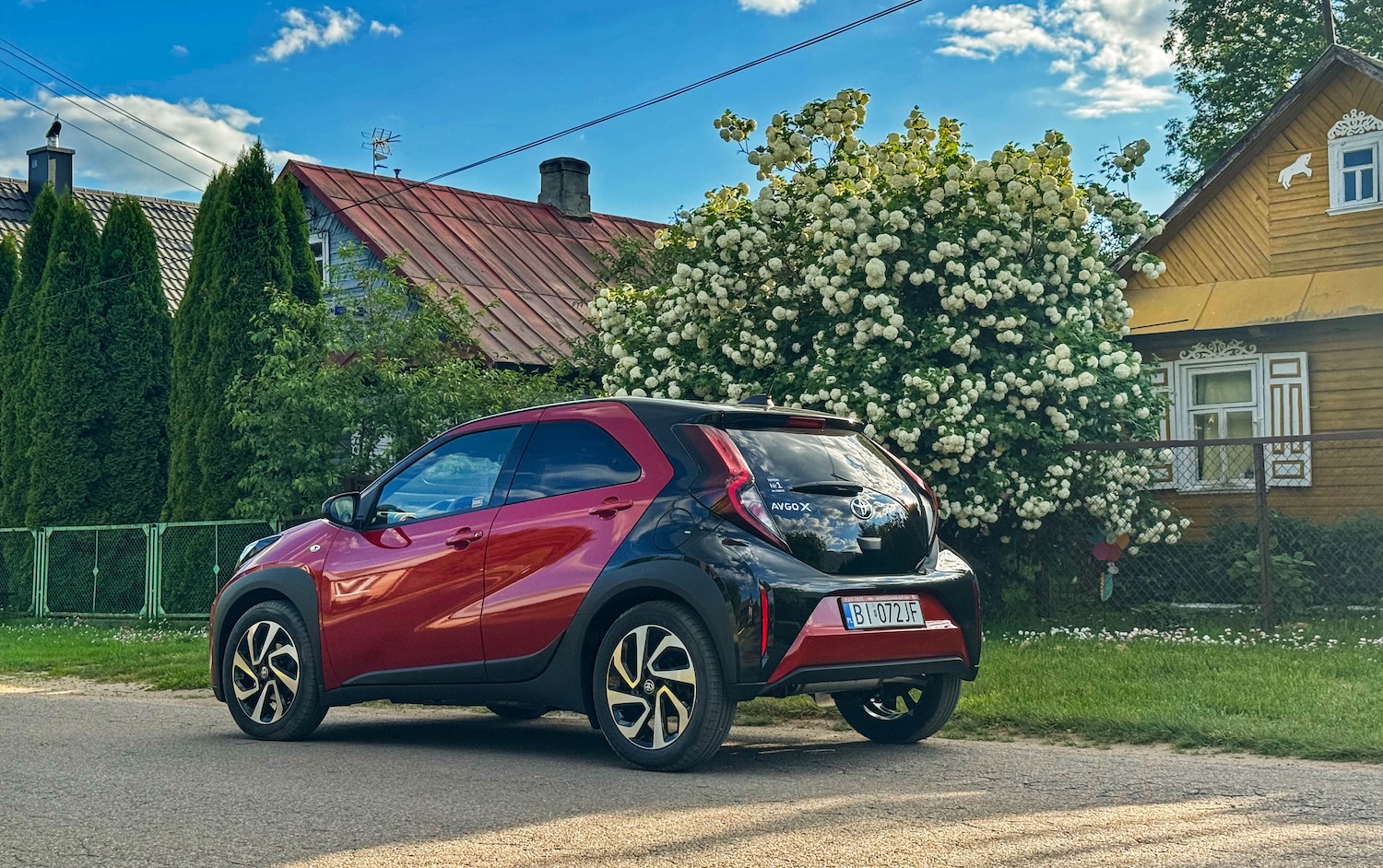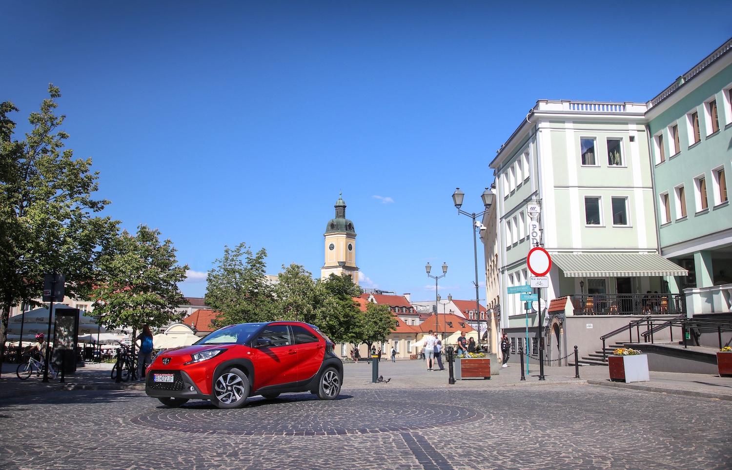 • Toyota Aygo X to nowoczesny, kompaktowy samochód, który doskonale sprawdzi się w miejskim środowisku. Wyposażony w benzynowy silnik o mocy 72 KM i manualną skrzynię biegów, zapewnia płynną i oszczędną jazdę, ze średnim spalaniem na poziomie 4,9 l/100 km. Choć to niewielki samochód, oferuje przestrzeń dla czterech pasażerów i ich bagaży, z bagażnikiem o pojemności 231 litrów, co jest wystarczające na codzienne potrzeby.